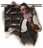 Here is the complete list of all Norman Rockwell magazine covers. Now he is ready to thread the needle. He has already twisted the thread. Now he just has to thread it through that tiny hole. His cat is also ready to assist if necessary. Moral support always helps.